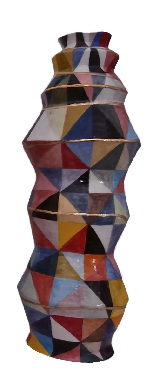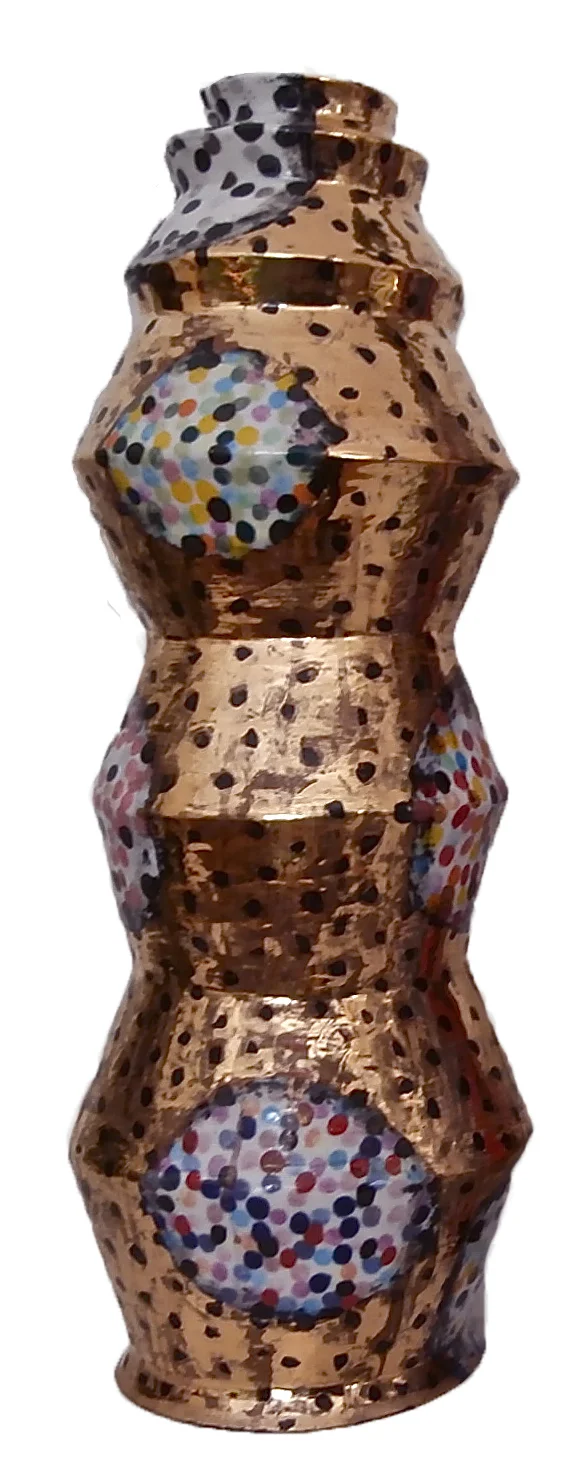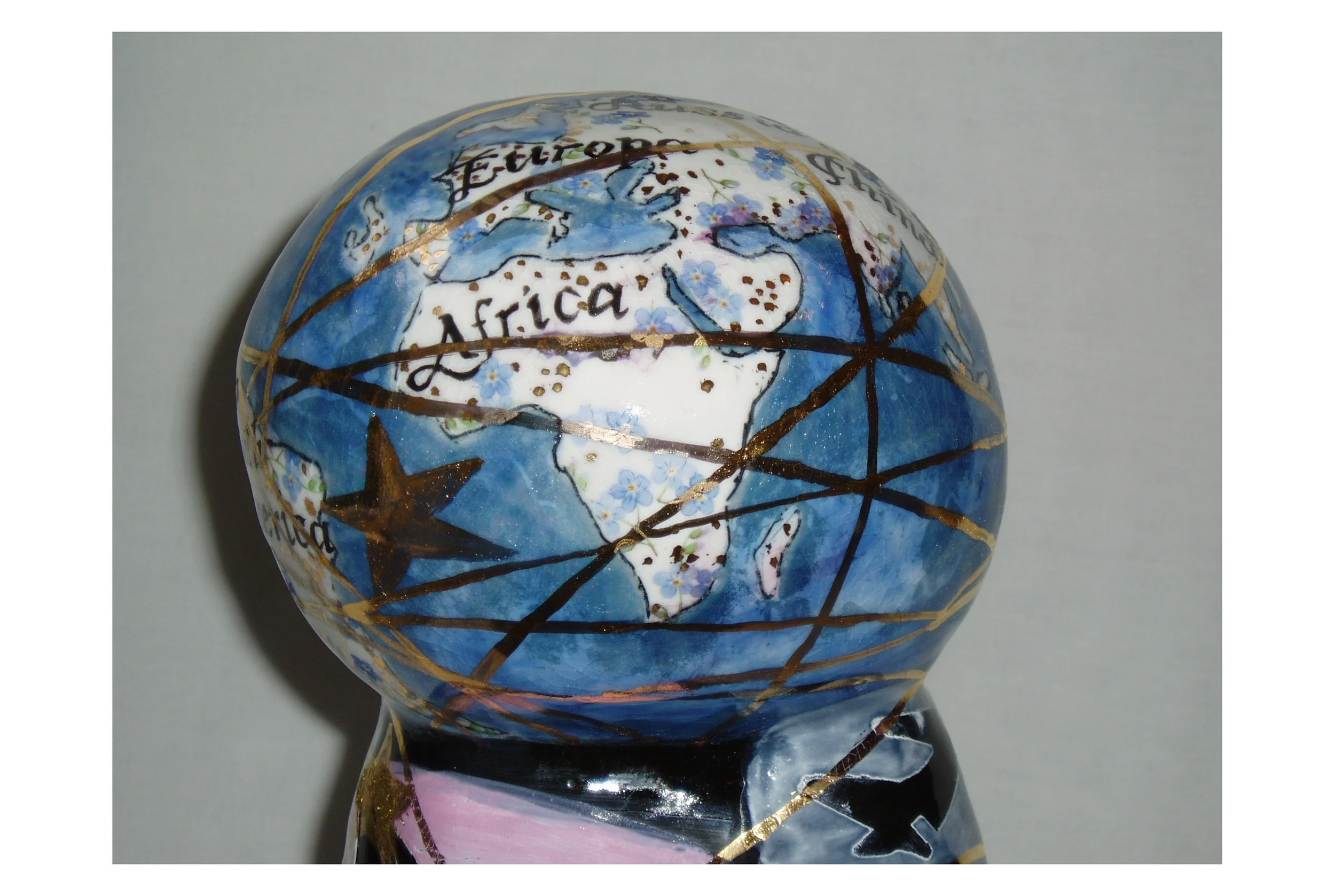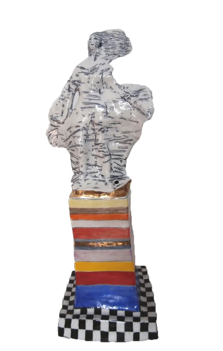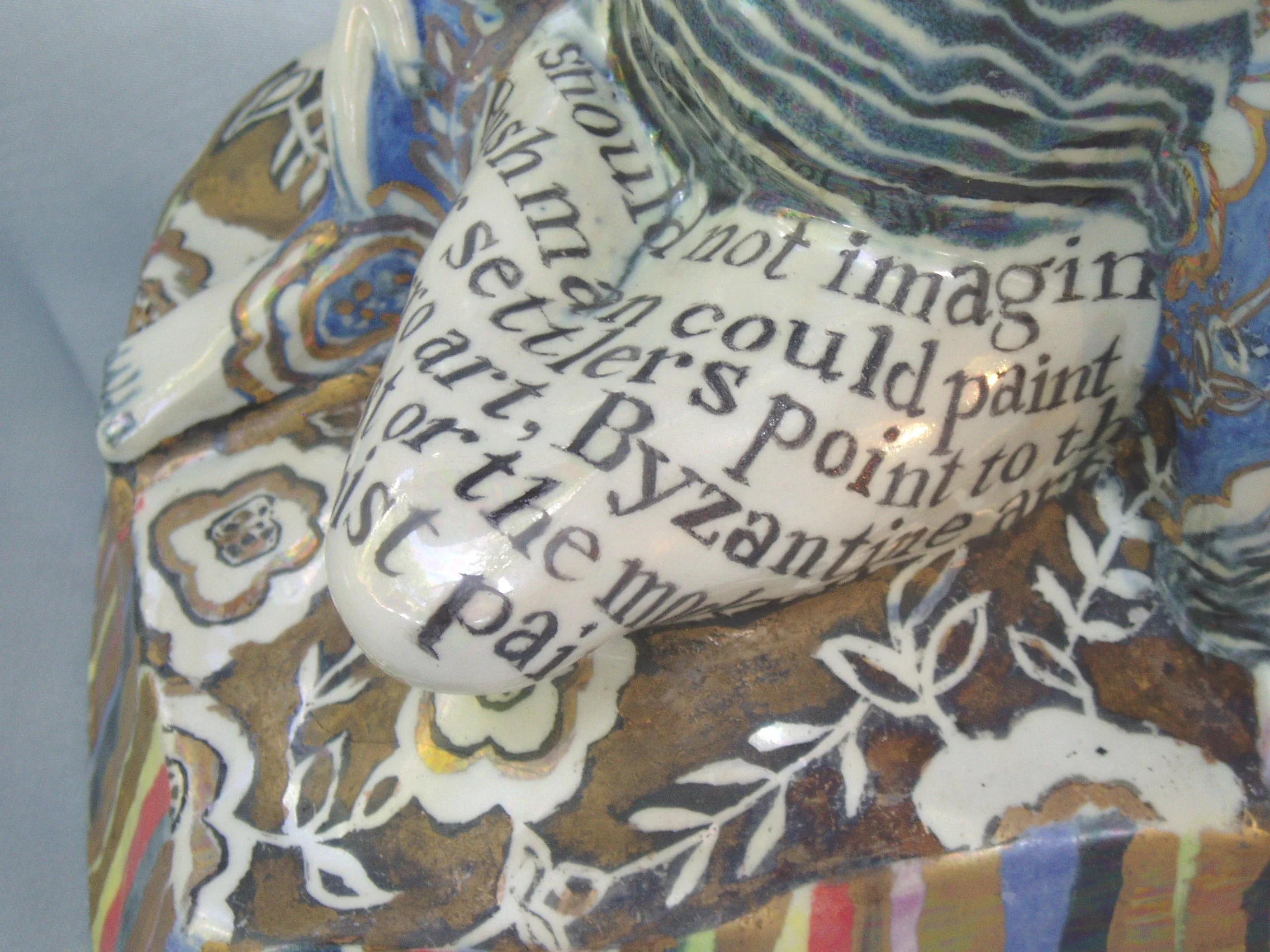 Table Mountain with Donatello's David, slab-built porcelain wavy bowl underglaze, onglaze painting and metallic lustres, 33cm diameter, 2008